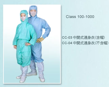 材質:Polyester 100% 產品規格:中開式連體服(連帽) 適用環境:CLASS 100-10000無塵室使用